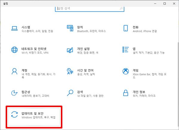 ② 설정 창에서 ‘업데이트 및 보안’ 을 클릭합니다.